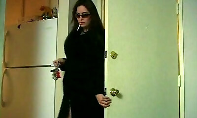 verführerische schlampe im zeugenstand-thru gewand rauchen eine ciggie