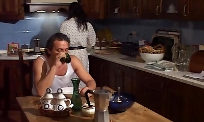 Gorgeous brunette babe groped and lured for hookup in the kitchen