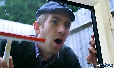 A proprietress of delicious milk cans Alexis Breeze gets fucked rock hard on a table in the office