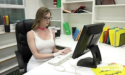 Platinum-blonde Secretary in office substitutes ass for anal sex...